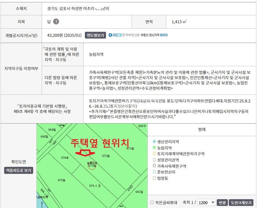 토지합계 면적 | 1,413㎡ 427평 | 면적정보 | 연 0㎡ 0평 |